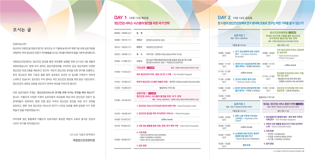 [중앙정신보건사업지원단] 2016년 국립정신건강센터 개원기념 국제 심포지엄 및 제8회 정신건강정책포럼 개최