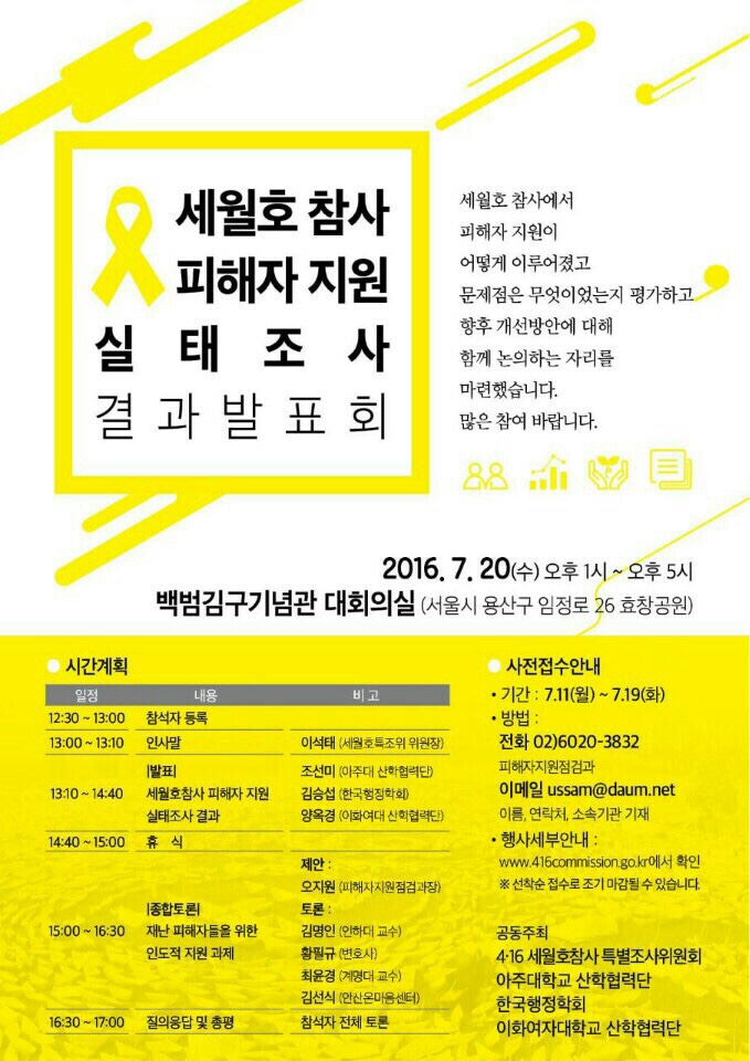세월호 참사 피해자 지원 실태조사 결과발표회 안내
