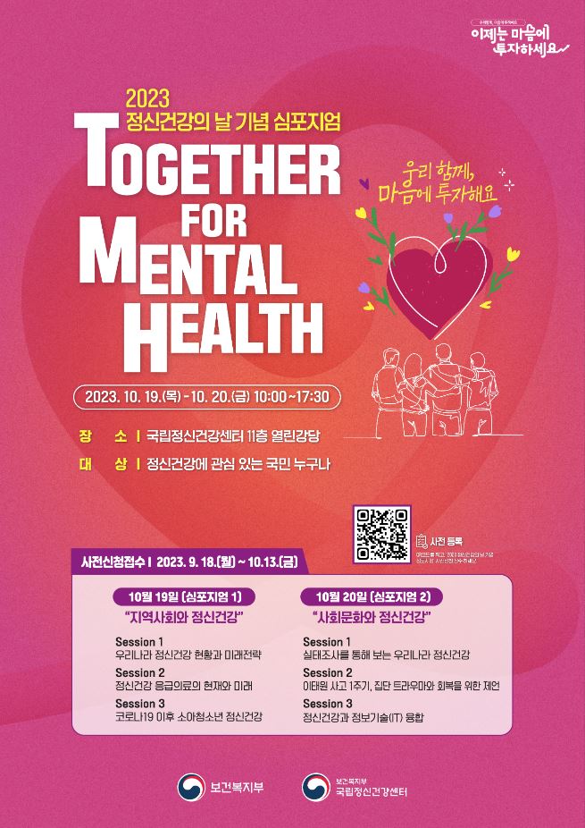 2023년 '정신건강의 날' 기념 심포지엄을 개최 합니다.