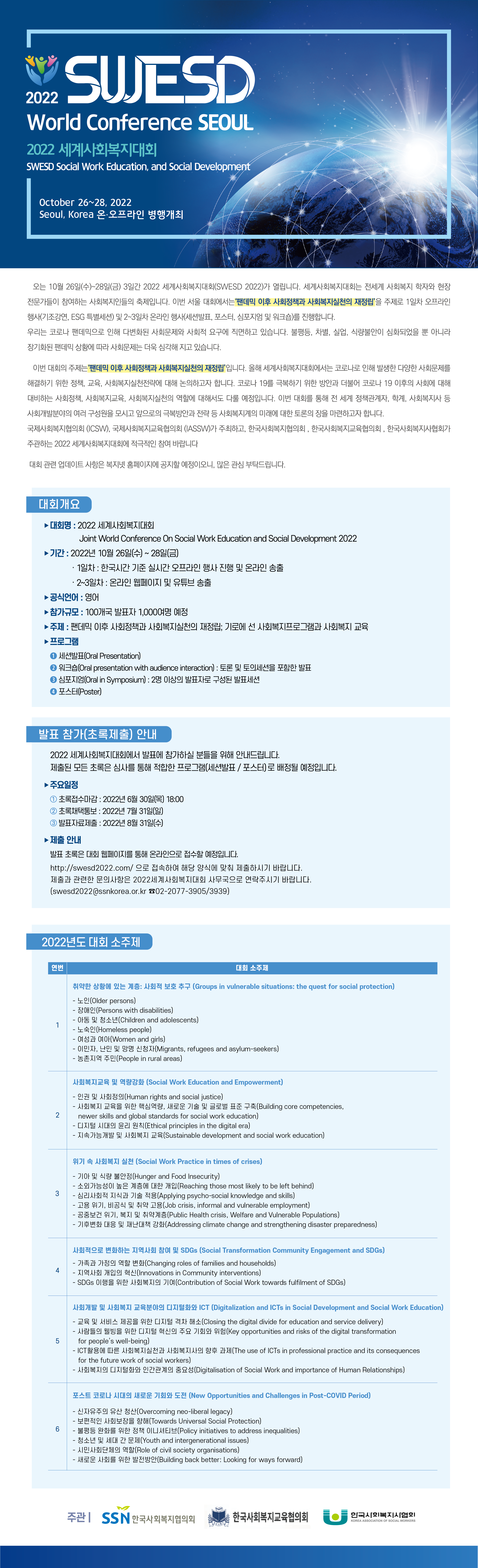 1) 행사명 : 2022 세계사회복지대회 2022 SWESD World Conference