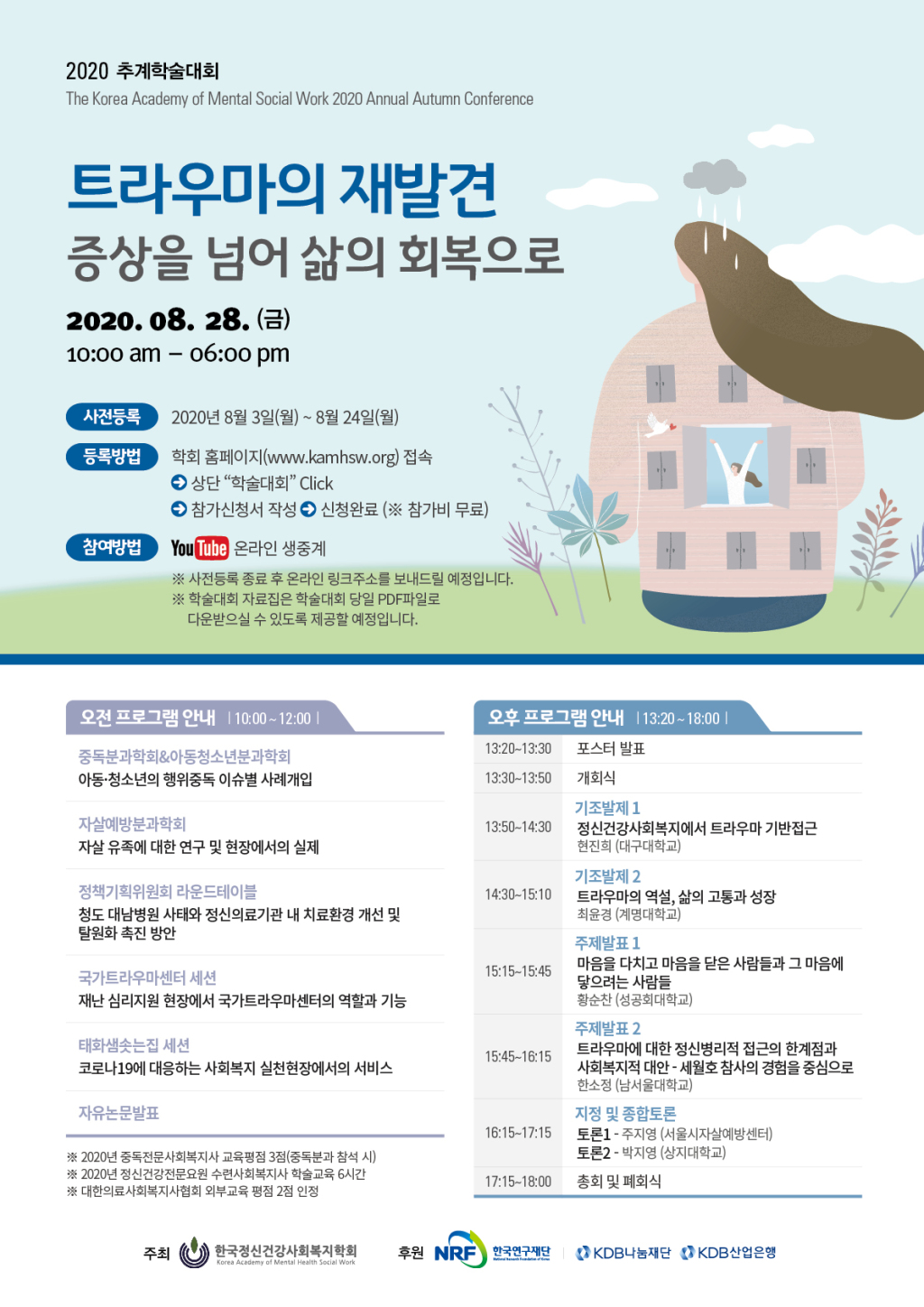 유튜브를 통한 생중계로 진행되는 학술대회에서 보다 많은 학회원님들을 뵐 수 있기를 고대하겠습니다.
