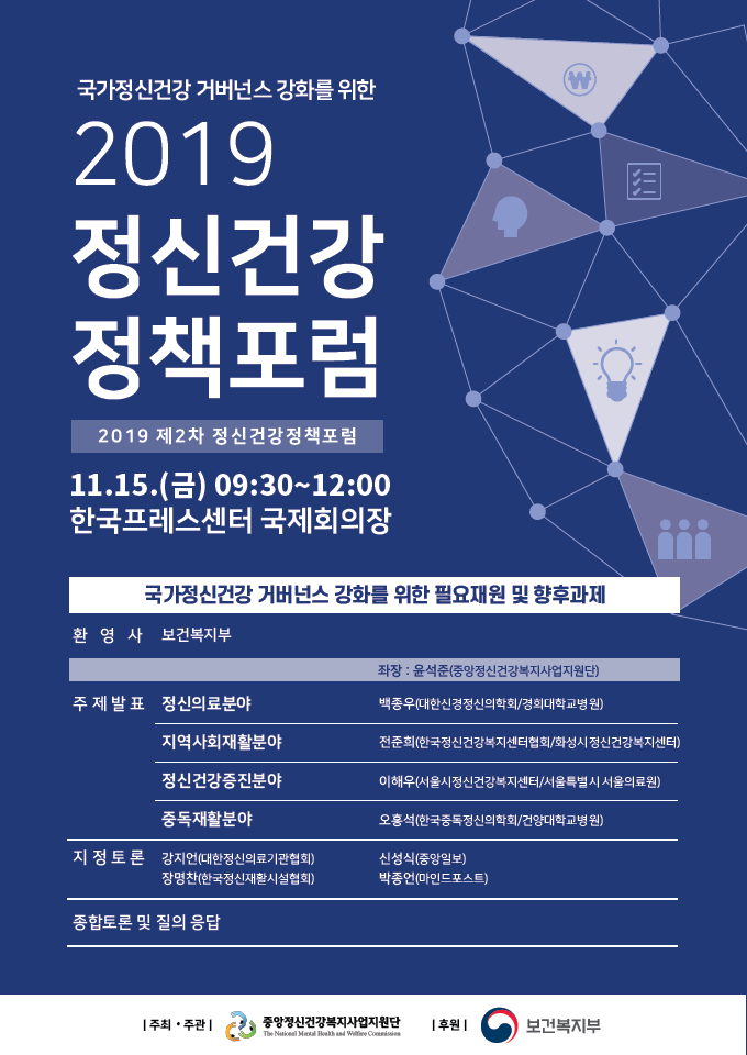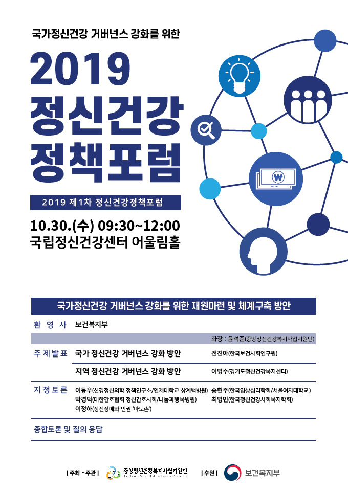 가. 행 사 명 : 국가 정신건강 거버넌스 강화를 위한 2019 정신건강정책포럼