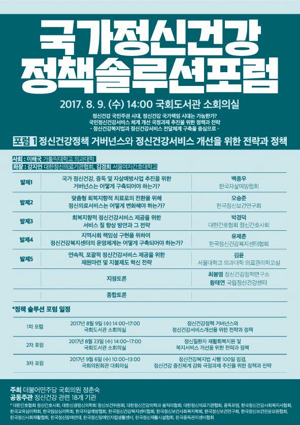 지난 8월 9일(수)'국가정신건강정책 솔루션 포럼'의 1차 포럼이