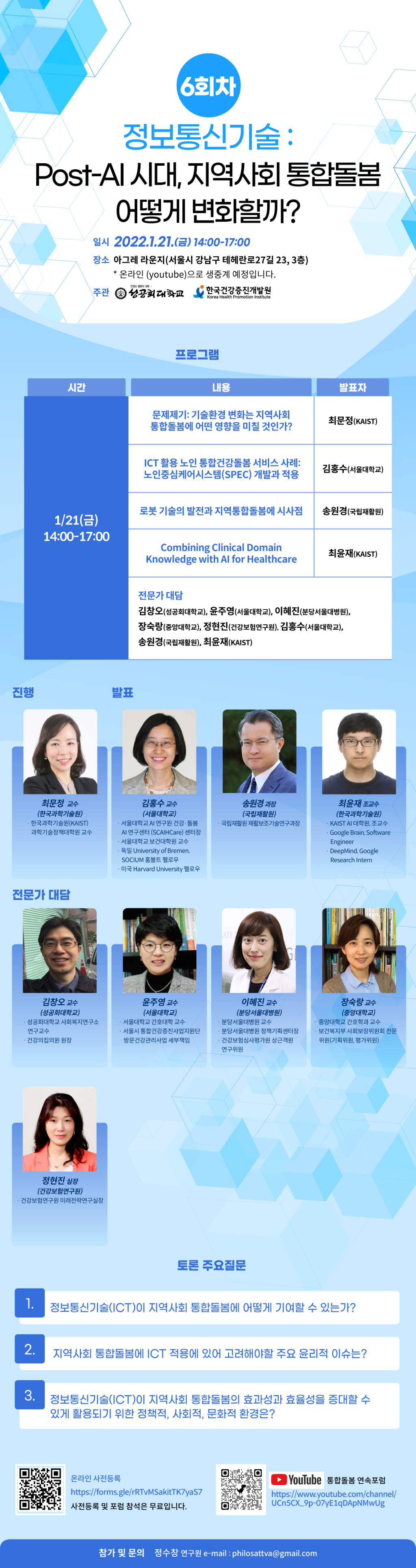 [지역사회 통합돌봄] 연속포럼 6회차 : Post-AI시대, 지역사회 통합돌봄 어떻게 변화할까? 개최안내