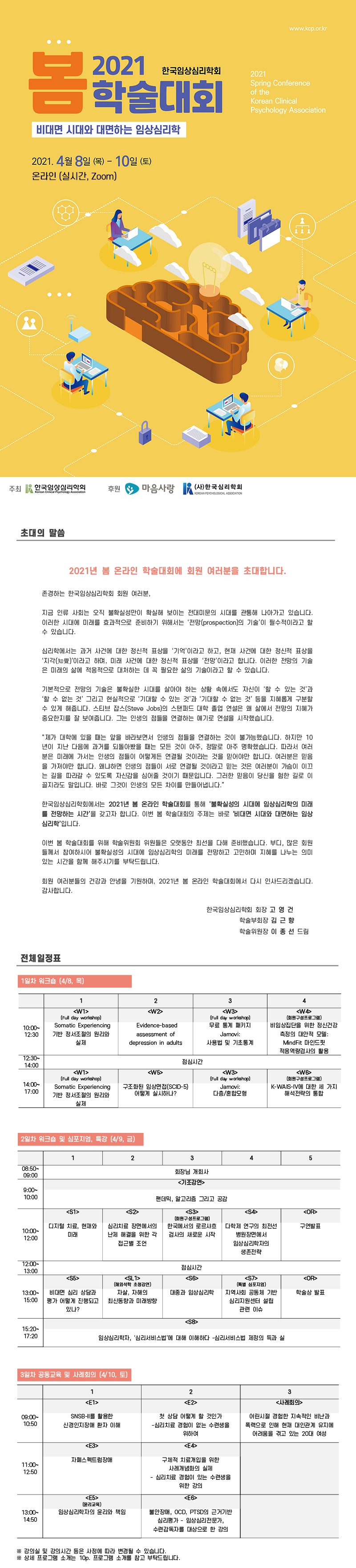 [한국임상심리학회] 2021 봄 학술대회(온라인) 개최 안내