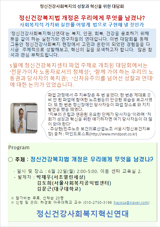 정신건강사회복지의 성찰과 혁신을 위한 대담회 6월 프로그램 안내