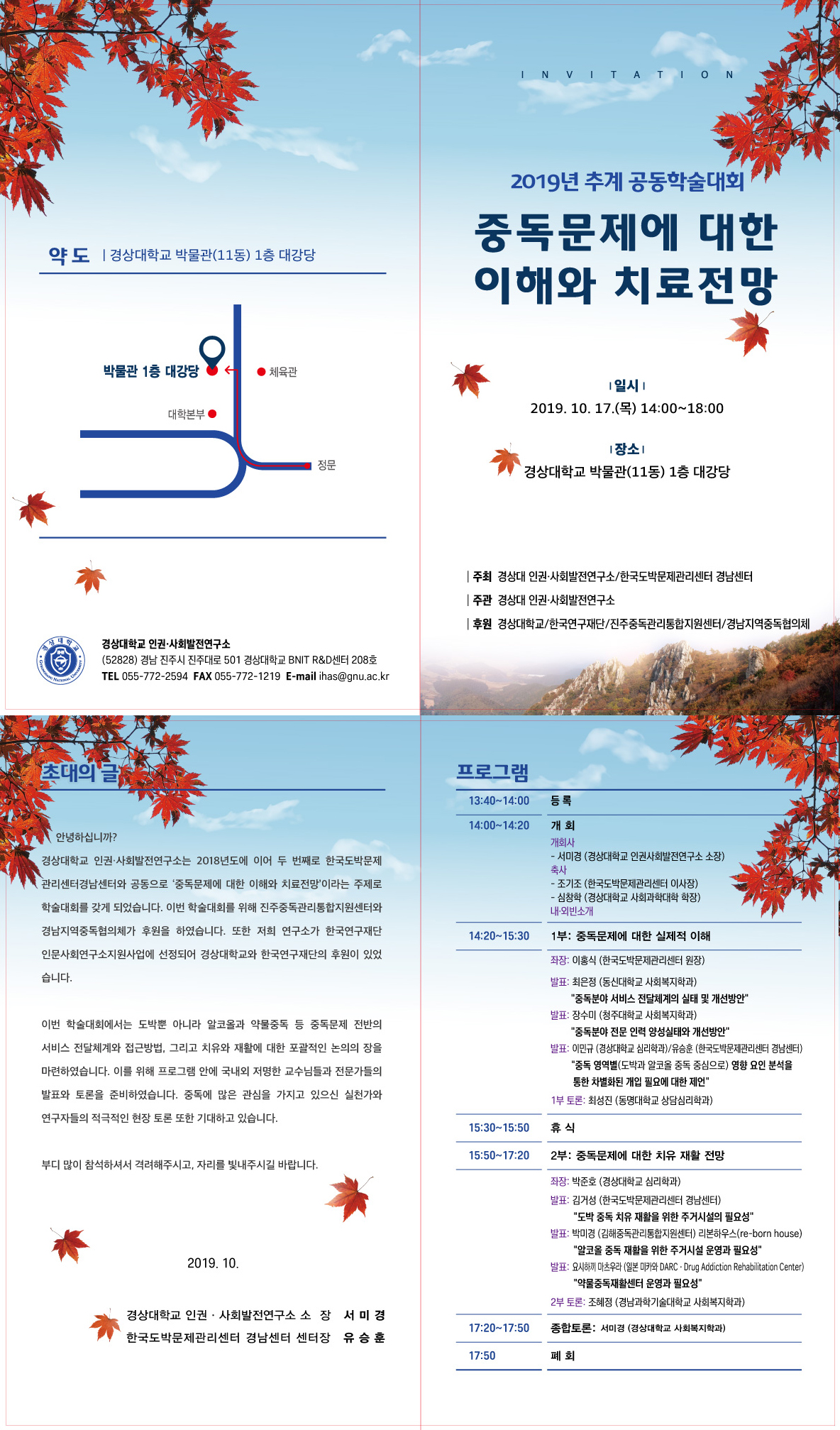 ◦ 후 원 : 경상대학교/경남지역중독협의체/한국연구재단/진주중독관리통합지원센터