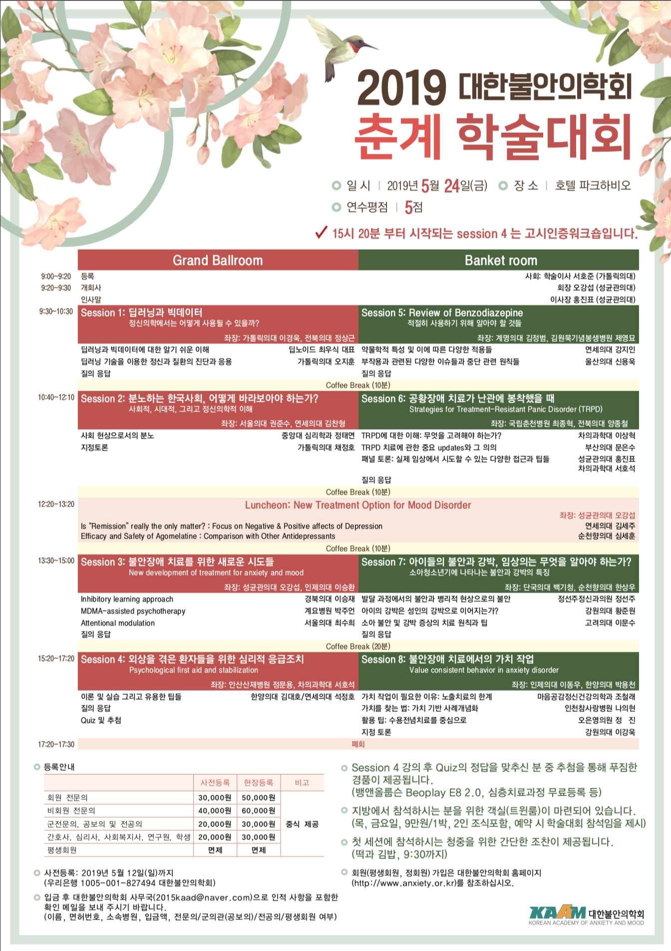 2019 대한불안의학회 춘계학술대회 [사전등록 연장- 19일(일)까지]