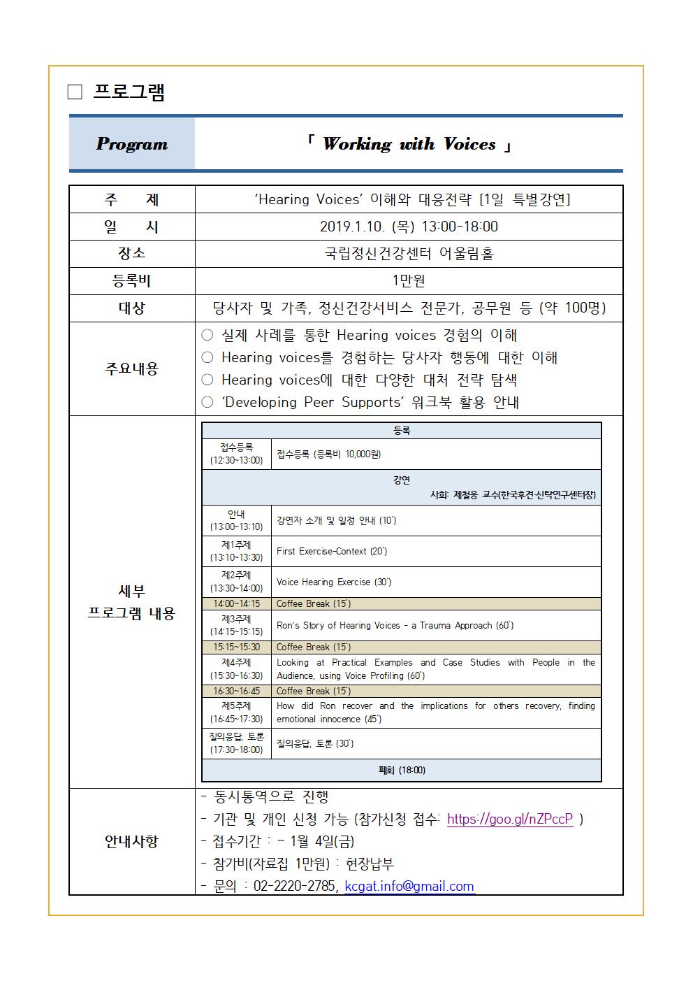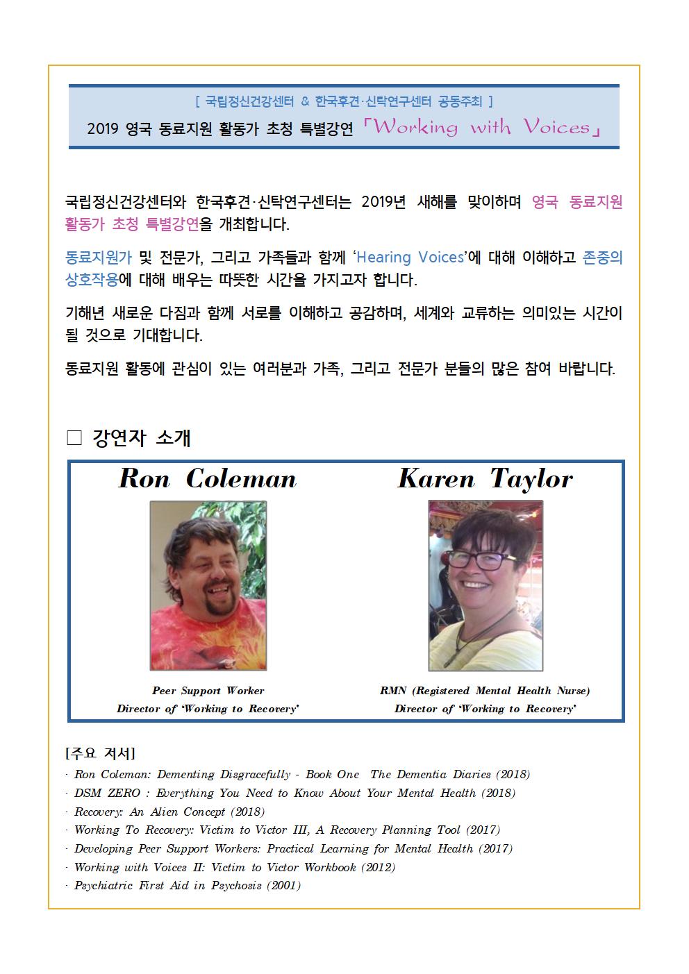 [행사] 영국 동료지원 활동가 초청 특별 강연 (1월 10일. 국립정신건강센터 어울림홀)
