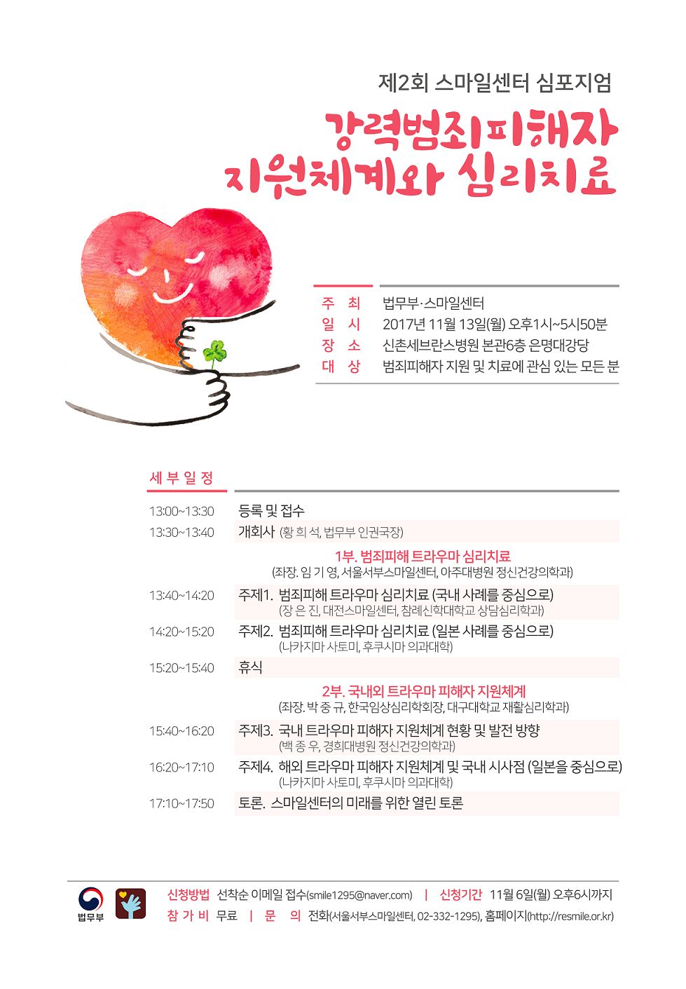 올해 제2회 심포지엄은 '강력범죄피해자 지원체계와 심리치료'라는 주제로 국내외 전문가들의 강연과 토론이 진행될 예정입니다