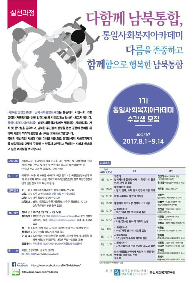 [모집] (사)북한인권정보센터 남북사회통합교육원 1기 통일사회복지아카데미 수강생 모집 안내