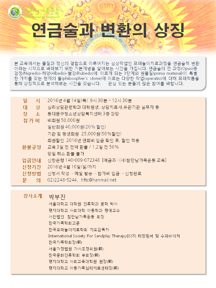 참만남가족운동 4월 특강-연금술과 변환의 상징- 안내입니다.