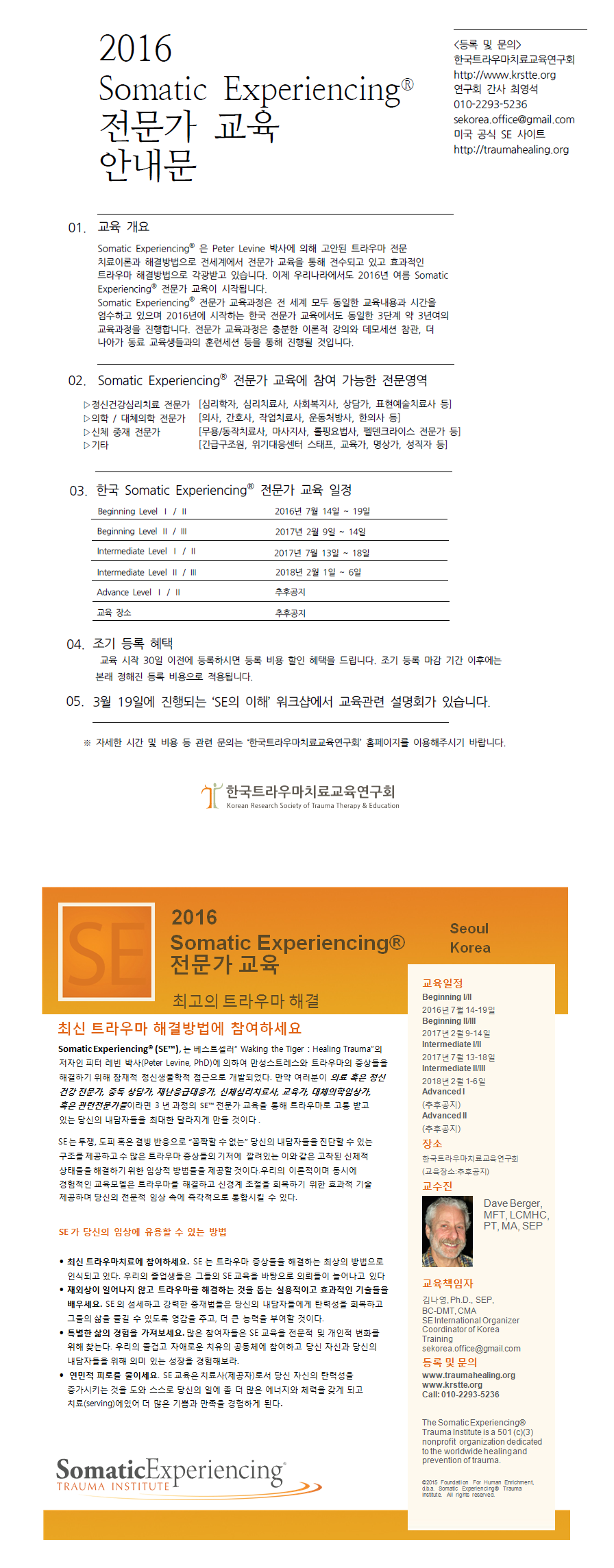 2016 Somatic Experiencing® 전문가 교육 안내