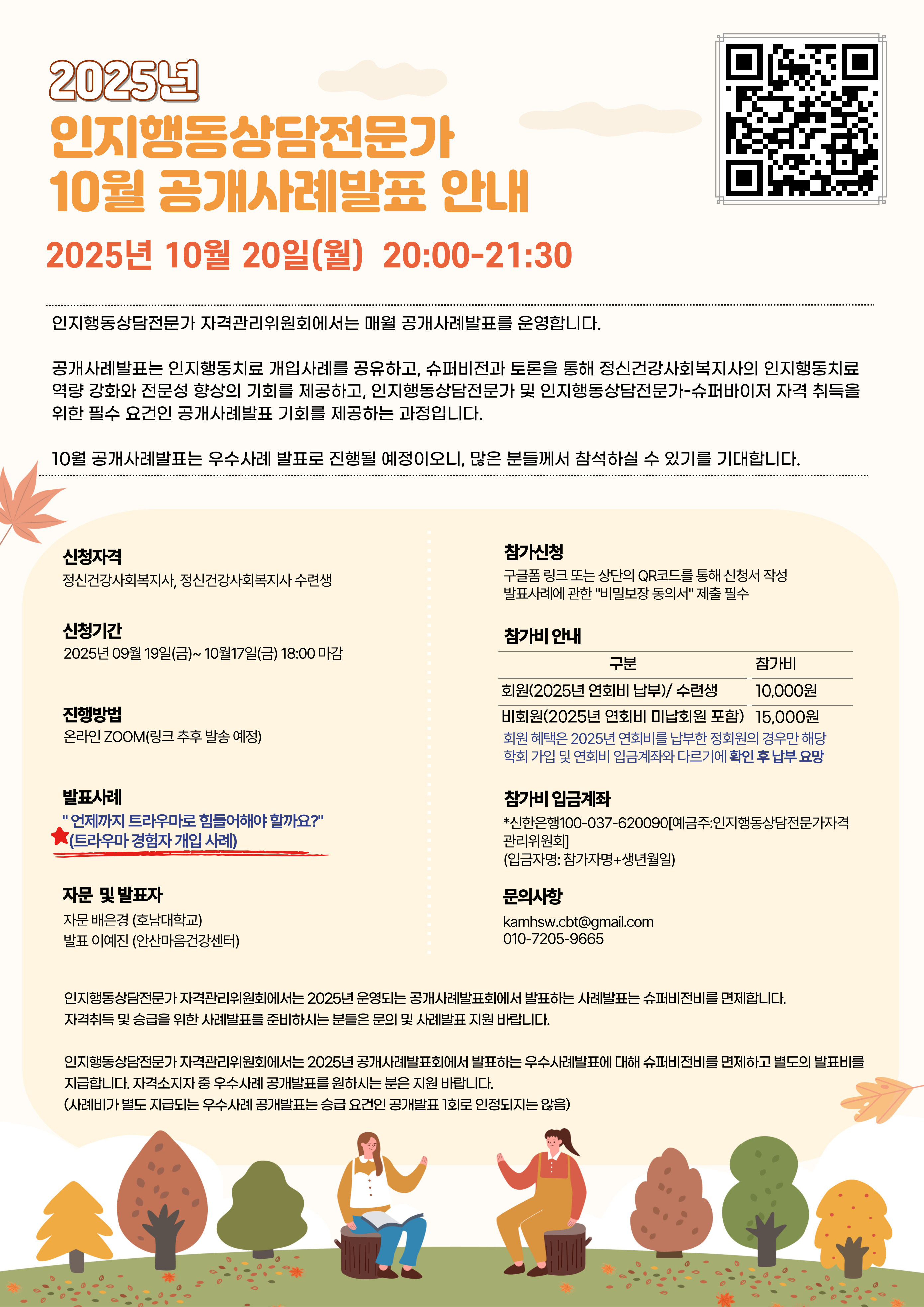 [인지행동상담전문가 자격관리위원회] 인지행동상담전문가 10월 공개사례발표 등록안내