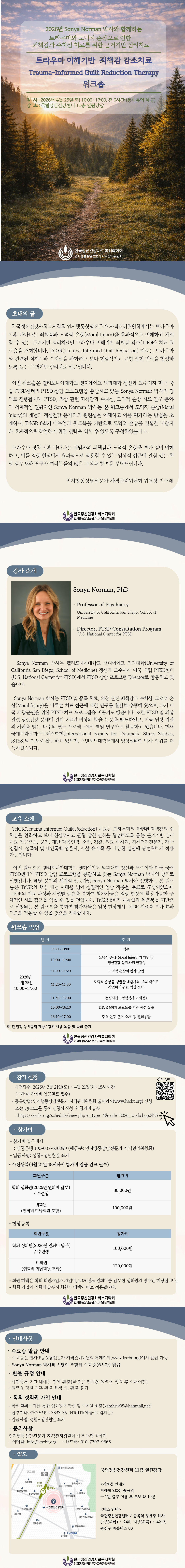 트라우마 이해기반 죄책감 감소치료(TrIGR) 워크숍을 아래와 같이 운영할 예정입니다.